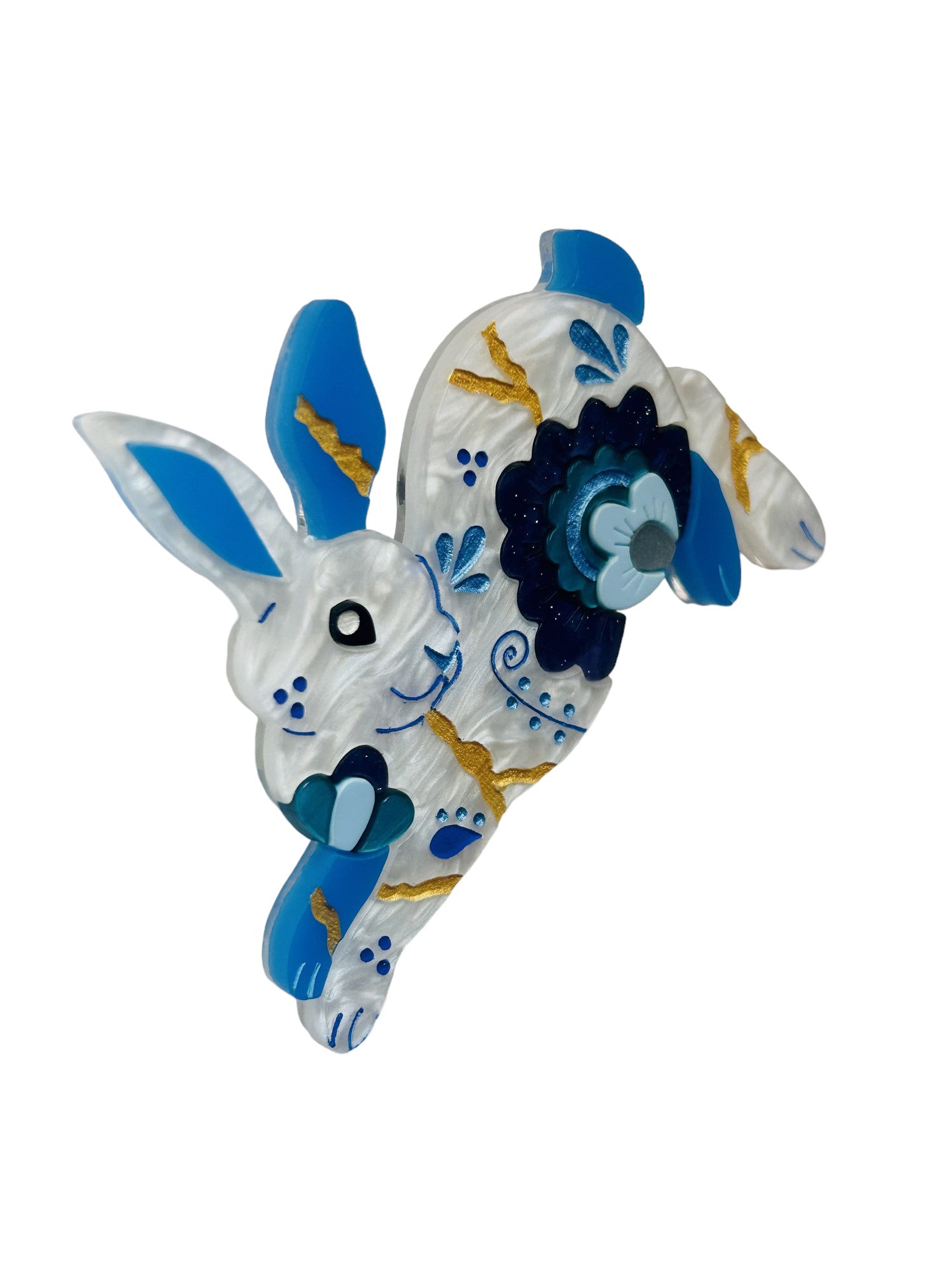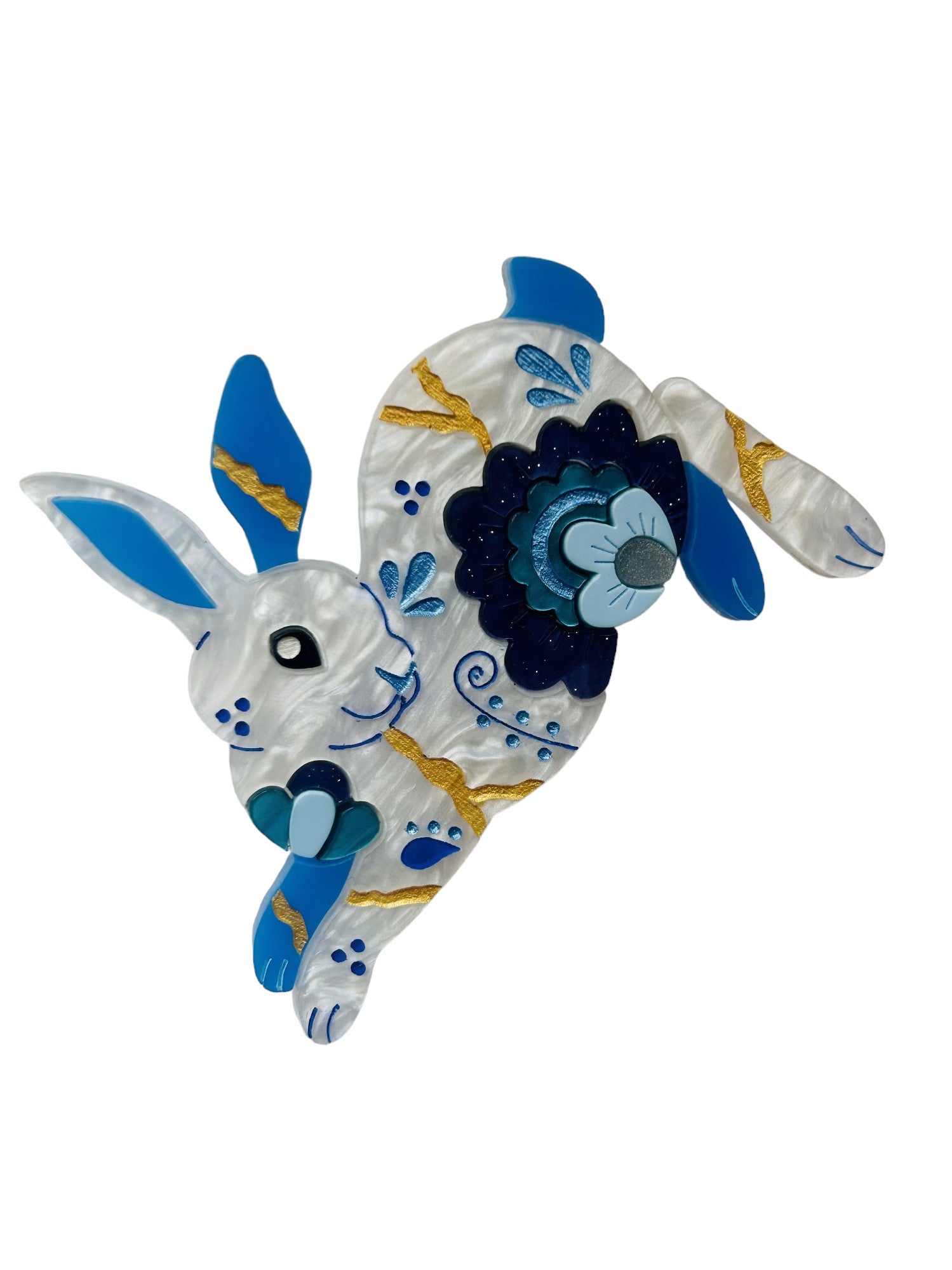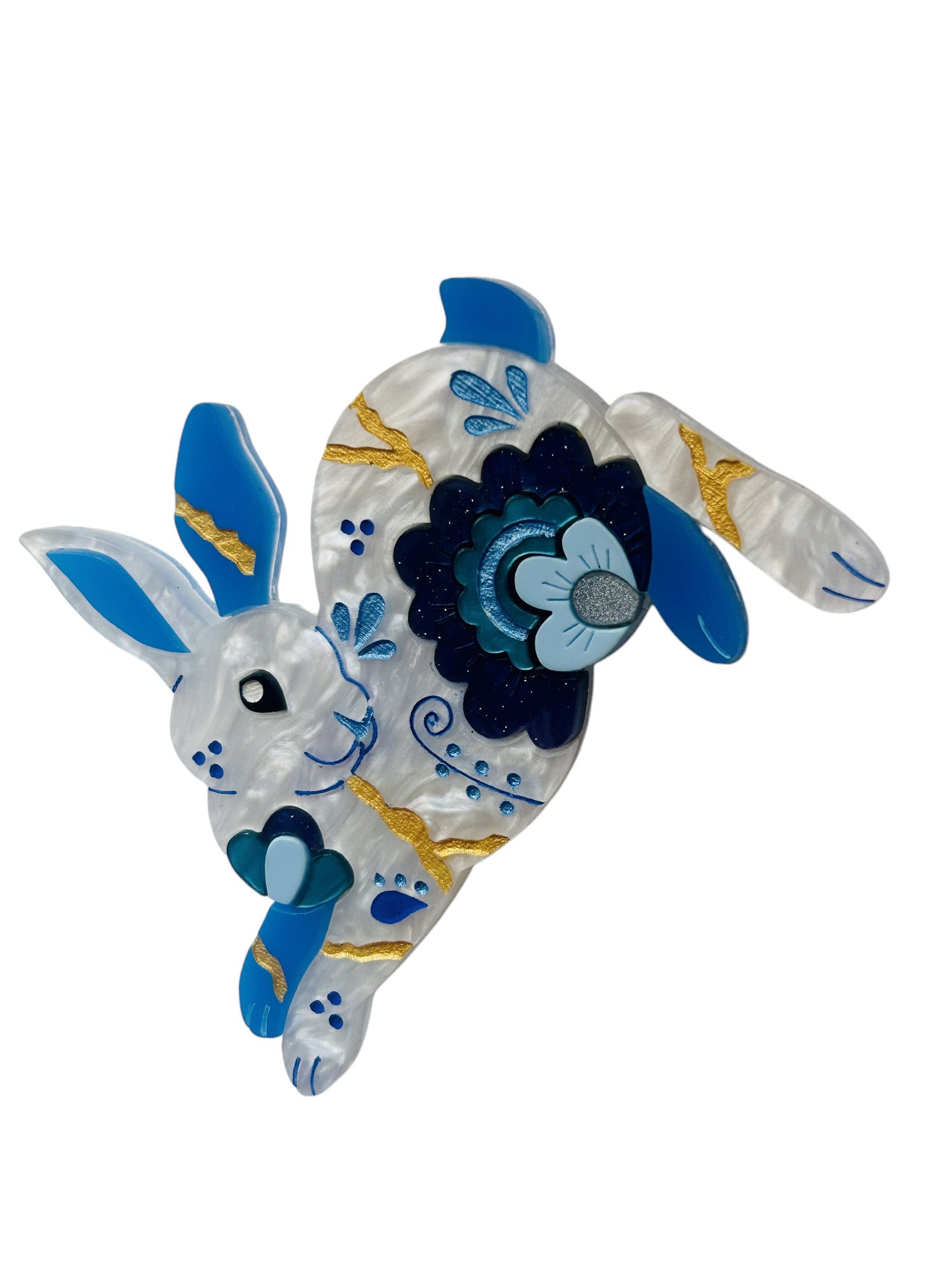 Questa spilla è composta da due lastre di acrilico/plexiglas. La base è trasparente. Le incisioni sono riempite con colori acrilici.