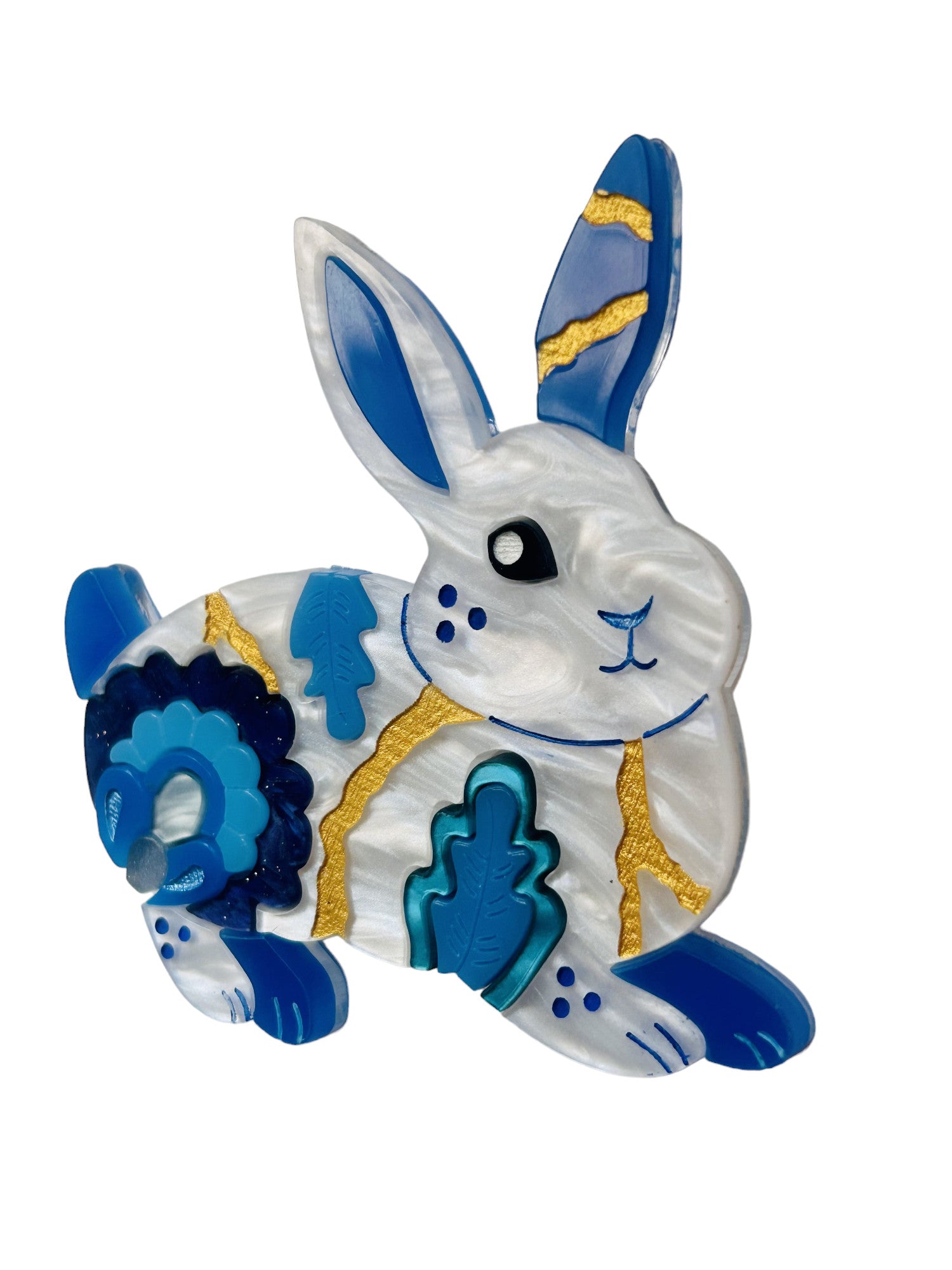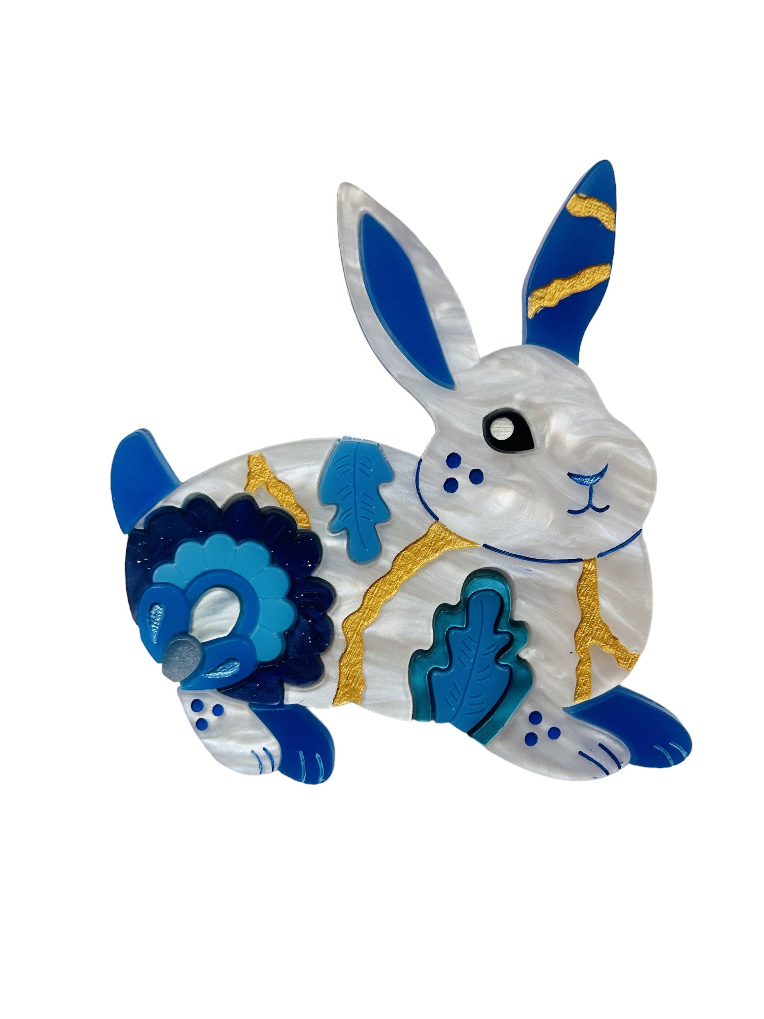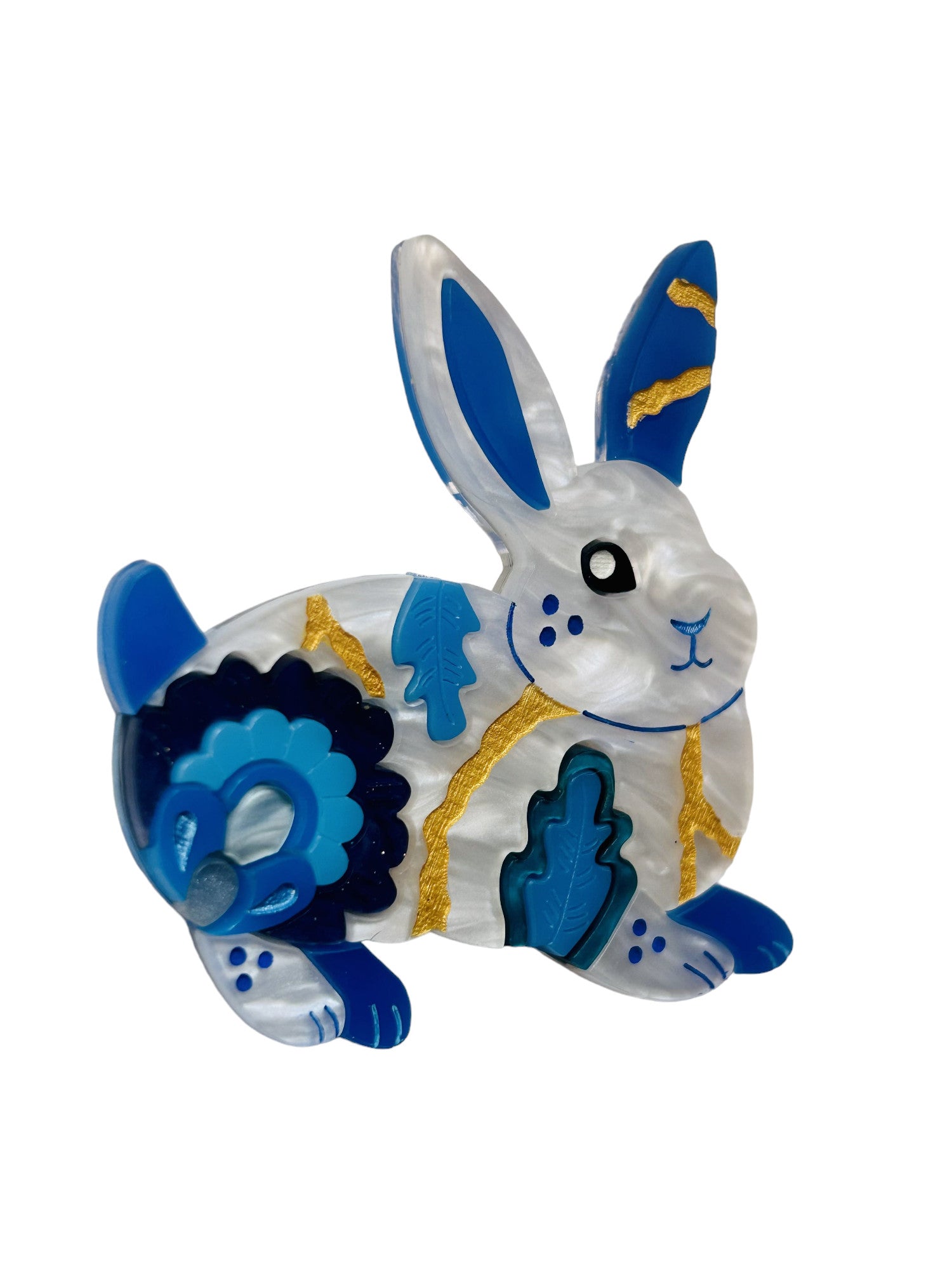 Questa spilla è composta da due lastre di acrilico/plexiglas. La base è trasparente. Le incisioni sono riempite con colori acrilici.