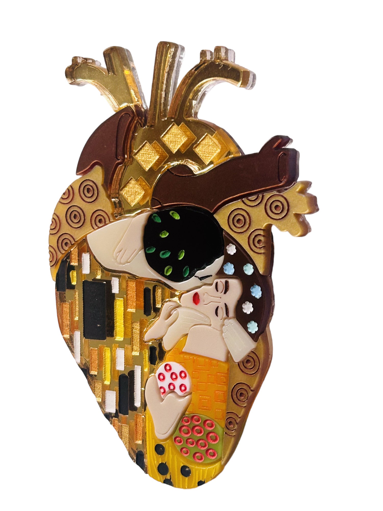Questa spilla è composta da due lastre di acrilico/plexiglas. La base è trasparente. Le incisioni sono riempite con colori acrilici.