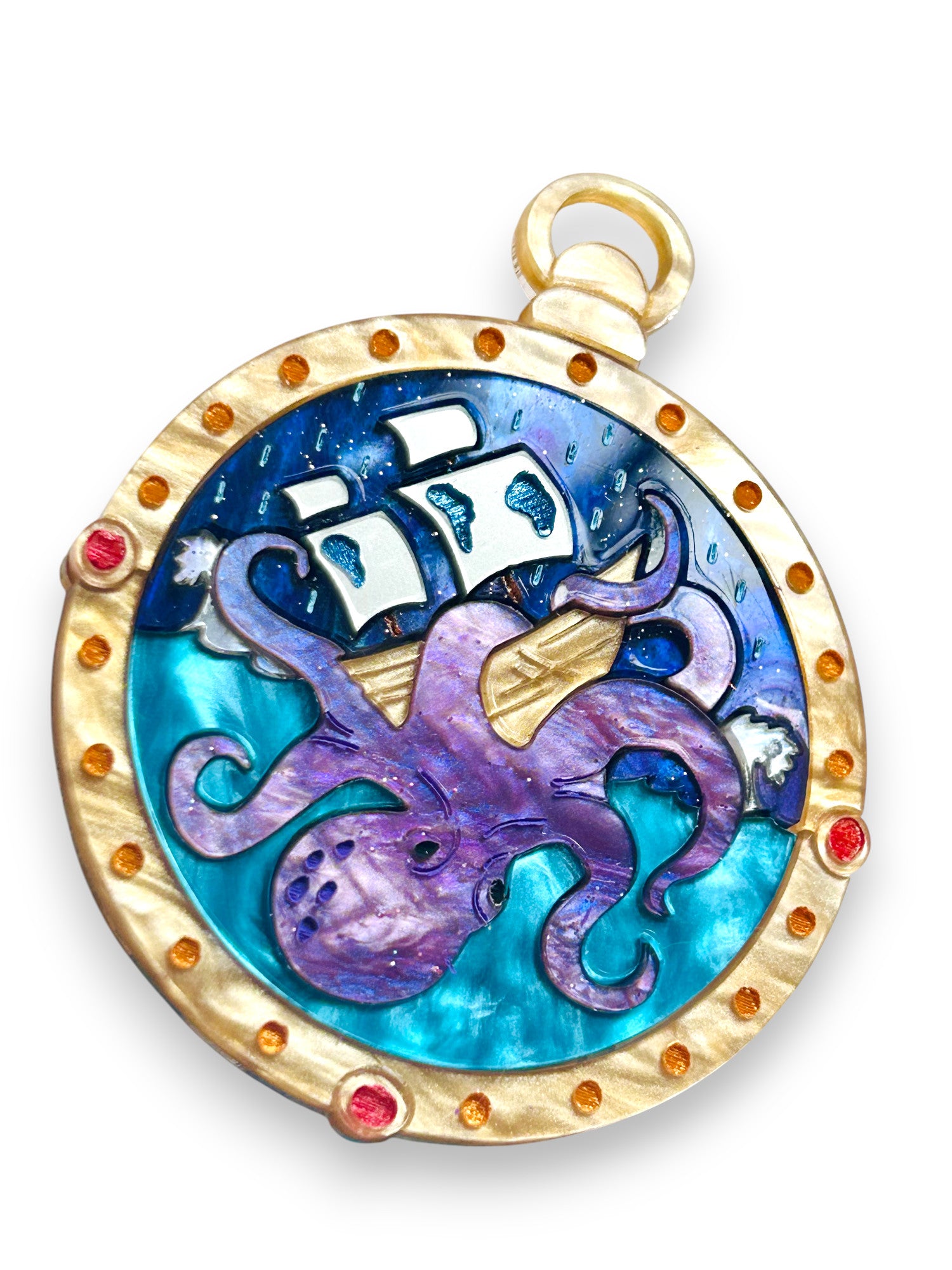 Questa spilla è composta da due lastre di acrilico/plexiglas. La base è trasparente. Le incisioni sono riempite con colori acrilici. Si prega di notare che il colore di alcune lastre non è uniforme, pertanto le tonalità potrebbero differire leggermente da quelle mostrate nelle foto, poiché dipendono dal punto delle lastre in cui vengono tagliati i pezzi.