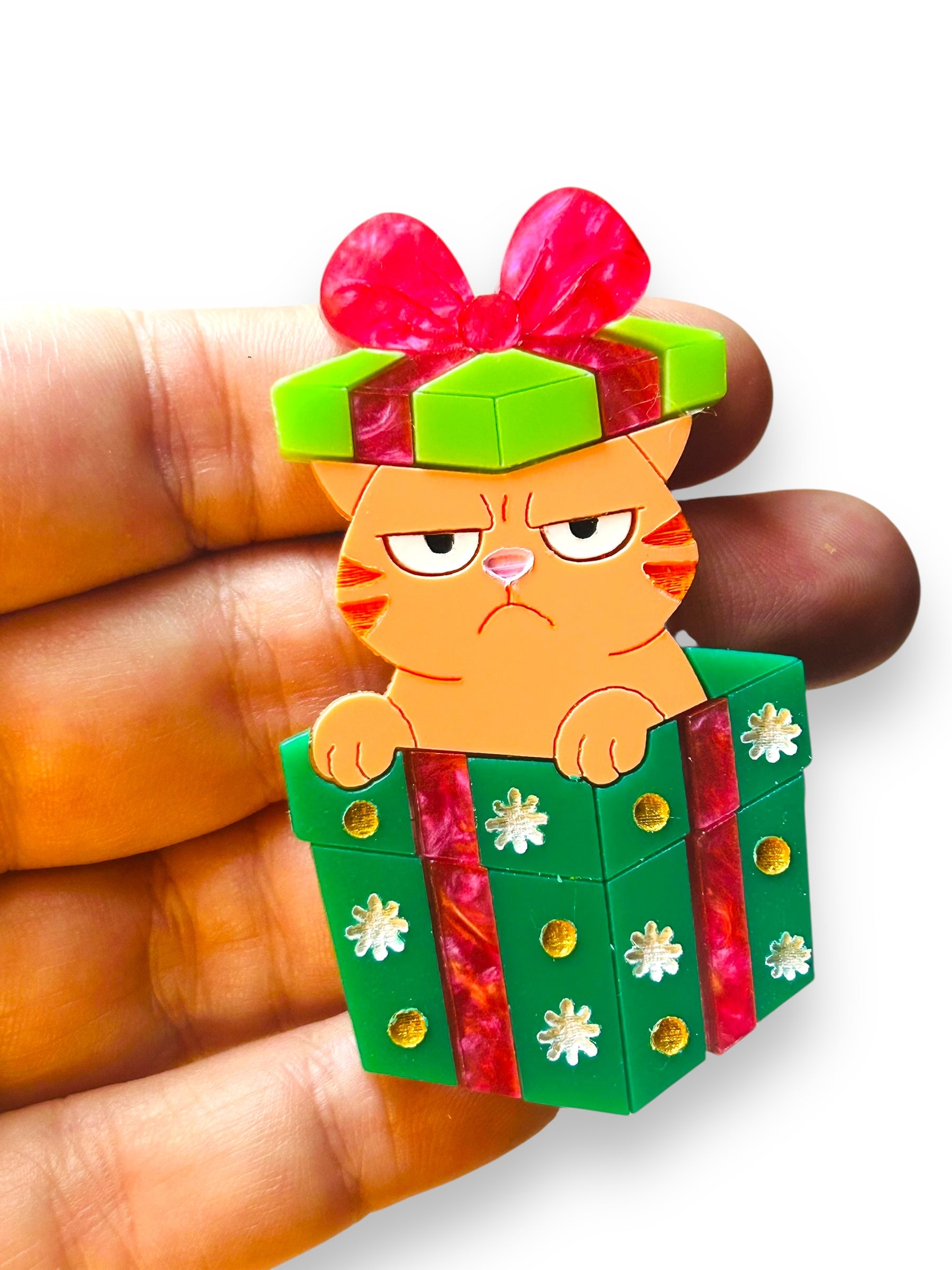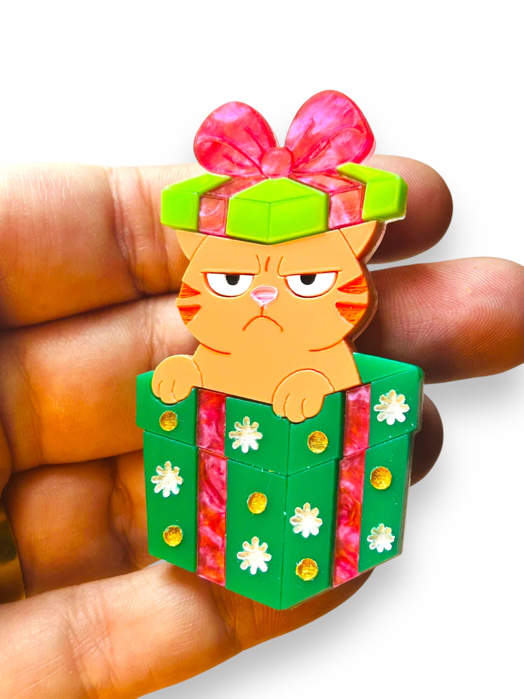 Meowy Christmas - Spilla Gatto dentro Scatola Regalo