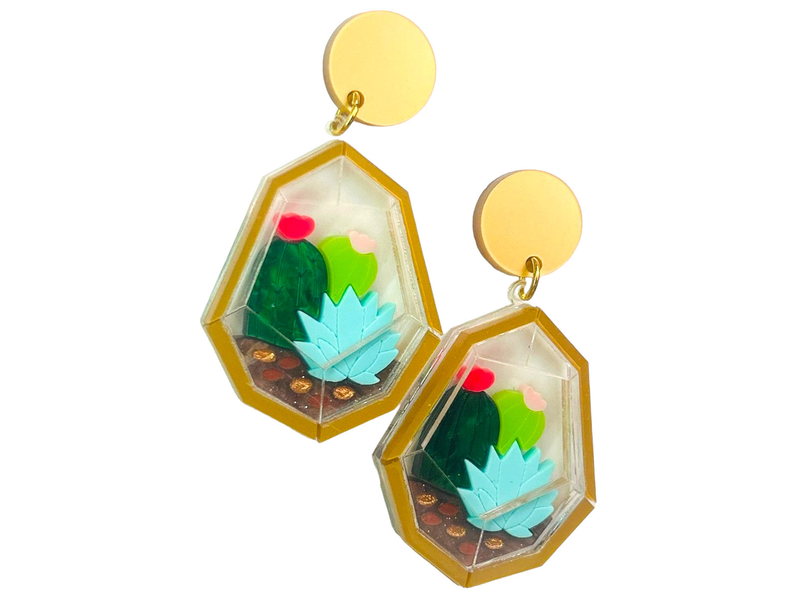 Piante Grasse - Terrario con Due Cactus - Orecchini