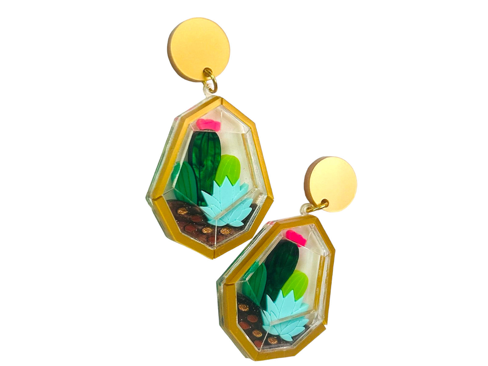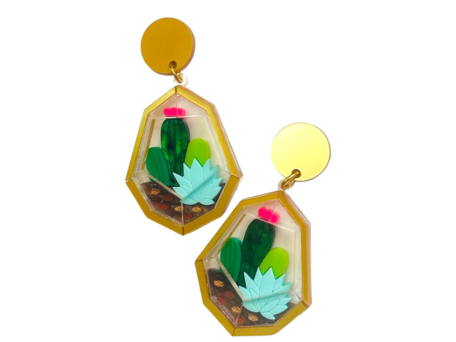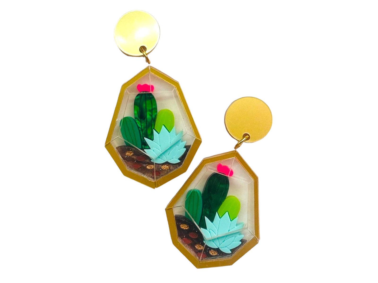 Piante Grasse - Terrario con Tre Cactus - Orecchini